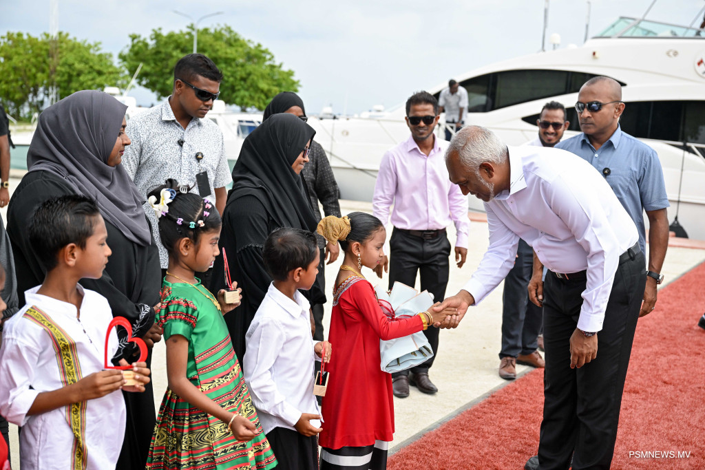 ތަރު ދުވަހުގެ މިދަތުރުފުޅުގެ ތެރެއިން ރައީސުލްޖުމްހޫރިއްޔާ ޑރ. މުޙައްމަދު މުޢިއްޒު، ގޮއިދޫއަށް ވަޑައިގެންނެވުުމުން އެރަށުން ވަނީ އެމަނިކުފާނަށް ހޫނު މަރުޙަބާއެއް ދަންނަވާފައެވެ.