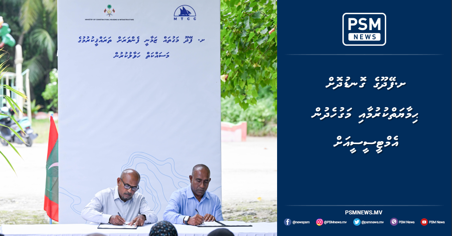 ށ.ފޭދޫގެ ގޮނޑުދޮށް ޙިމާޔަތްކުރުމާއި މަގުތައް ޒަމާނީ ފެންވަރަށް ތަރައްޤީކުރުމުގެ މަސައްކަތް މޯލްޑިވްސް ޓްރާންސްޕޯޓް އެންޑް ކޮންޓްރެކްޓިން ކޮމްޕެނީ، އެމްޓީސީސީއާ ހަވާލުކޮށްފިއެވެ. މި ދެ މަޝްރޫޢު އެމްޓީސީސީއާ ހަވާލުކުރުމުގެ އެއްބަސްވުމުގައިި ސޮއިކުރައްވާފައިވަނީ ރައީސުލްޖުމްހޫރުިއްޔާ ޑރ. މުޙައްމަދު މުޢިއްޒު، ށ. އަތޮޅަށް މިހާރު ފަށްޓަވާފައިވާ ދަތުރުފުޅުގެ ތެރެއިންނެވެ.