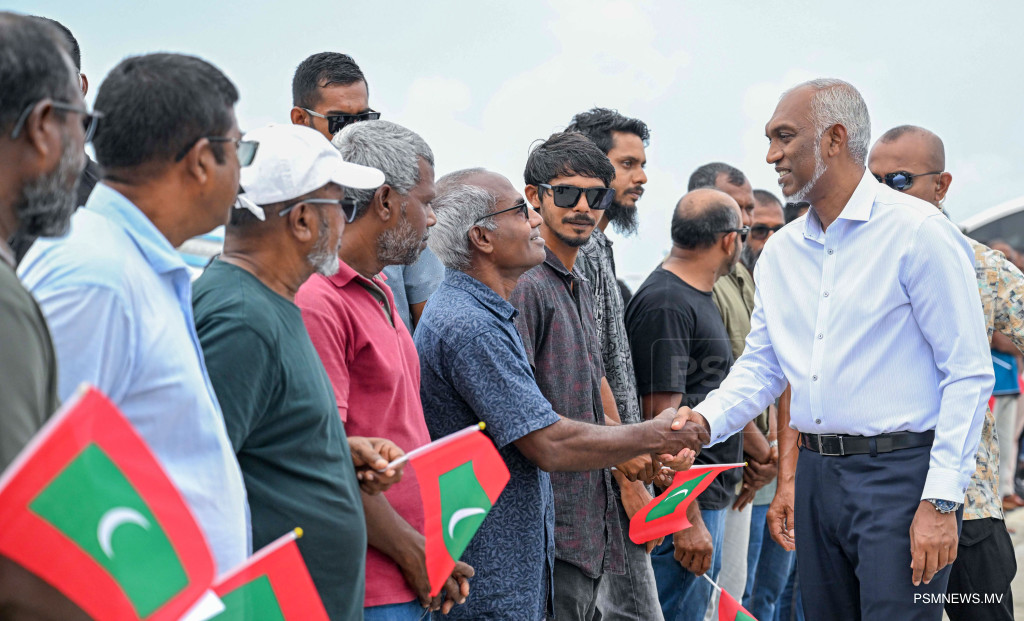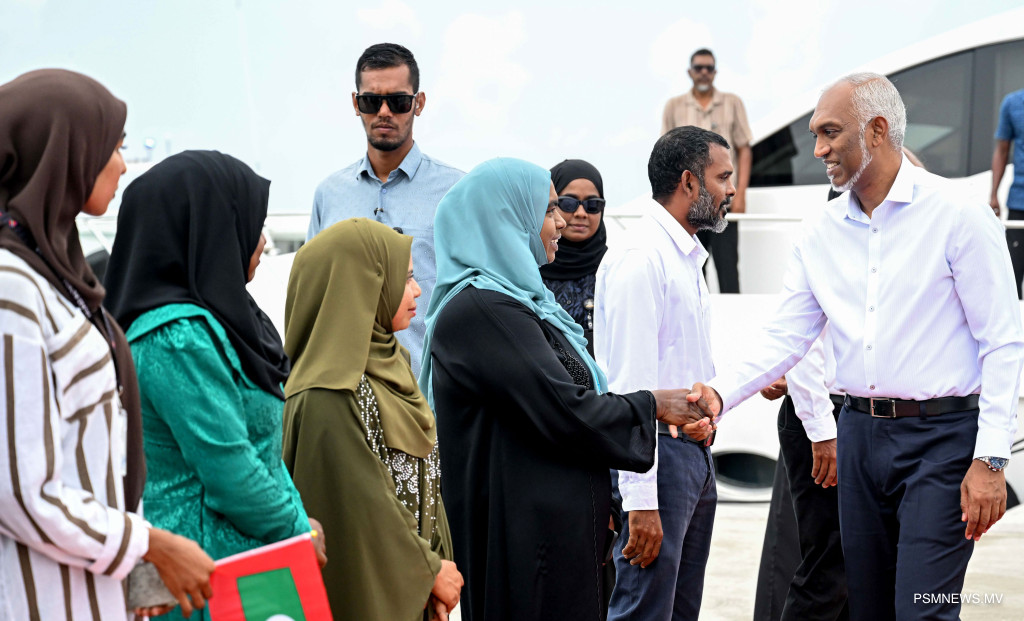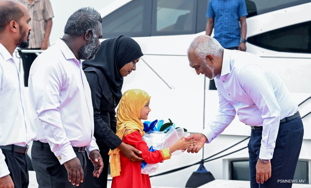 ރައީސުލްޖުމްހޫރިއްޔާ ޑރ. މުޙައްމަދު މުޢިއްޒު ށ. ފޭދޫއަށް ވަޑައިގަތުން / ފޮޓޯ: ރައީސް އޮފީސް