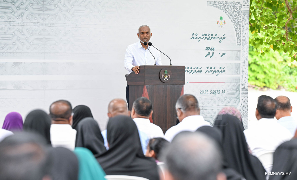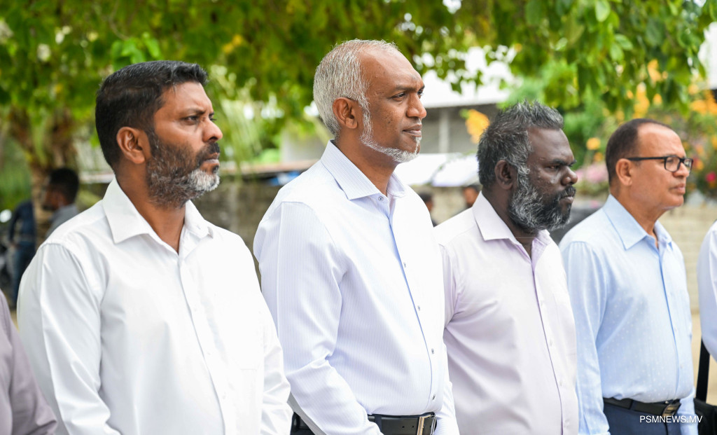 ށ. ފޭދޫގައި އިމާރާތްކުރާ ފިޓްނެސް އެންޑް ރެކްރިއޭޝަން ސެންޓަރުގެ ބިންގާ ބިންގާ އެޅުމުގެ ރަސްމިއްޔާތުގައި ރައީސުލްޖުމްހޫރިއްޔާ ޑރ. މުޙައްމަދު މުޢިއްޒު ބައިވެރިވެވަޑައިގަންނަވަނީ / ފޮޓޯ - ރައީސް އޮފީސް
