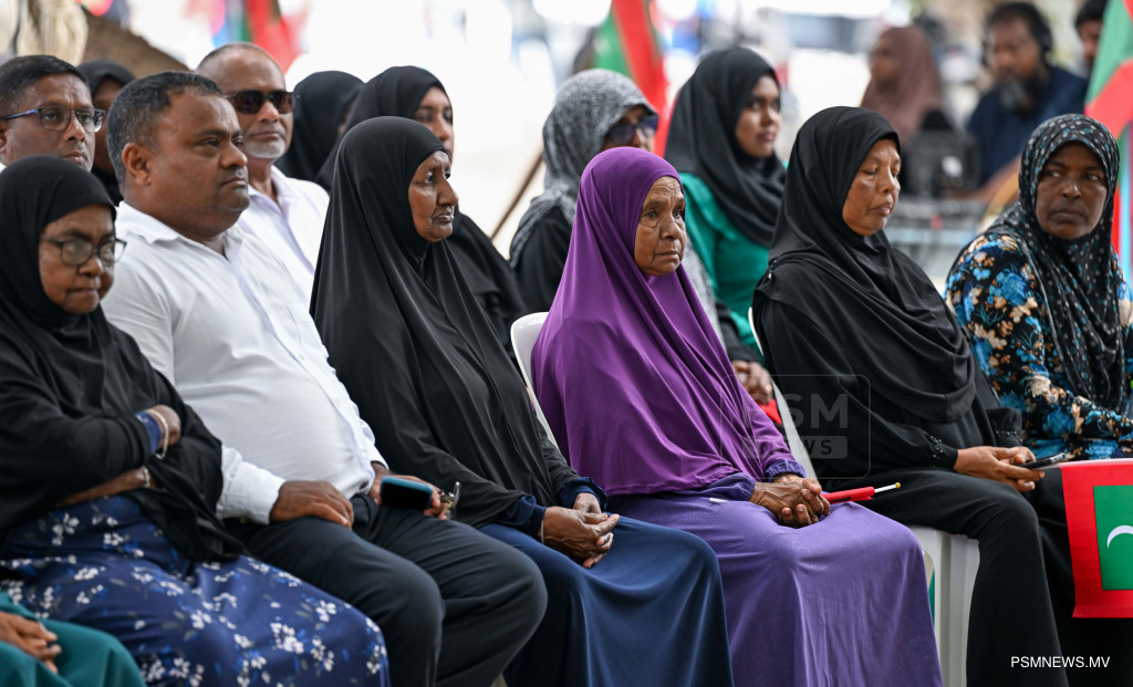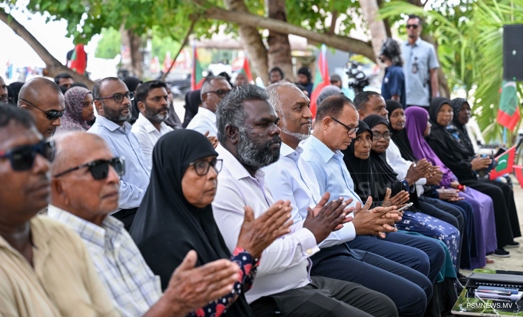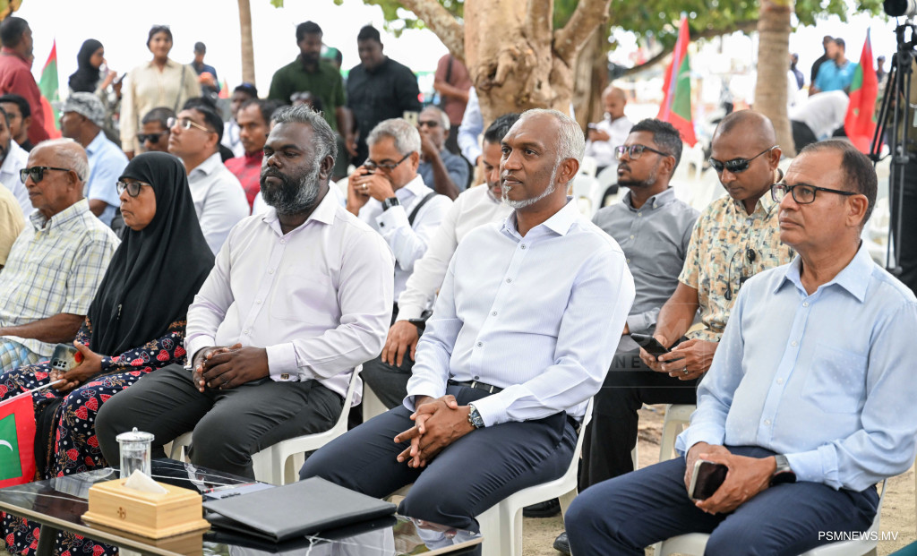 ރައީސުލްޖުމްހޫރިއްޔާ ޑރ. މުޙައްމަދު މުޢިއްޒު ށ. ފޭދޫ ރައްޔިތުންނާއ ބައްދަލުކުރެއްވުމަށް ބޭއްވިޖަލްސާގެ ތެރެއިން / ފޮޓޯ - ރައީސް އޮފީސް