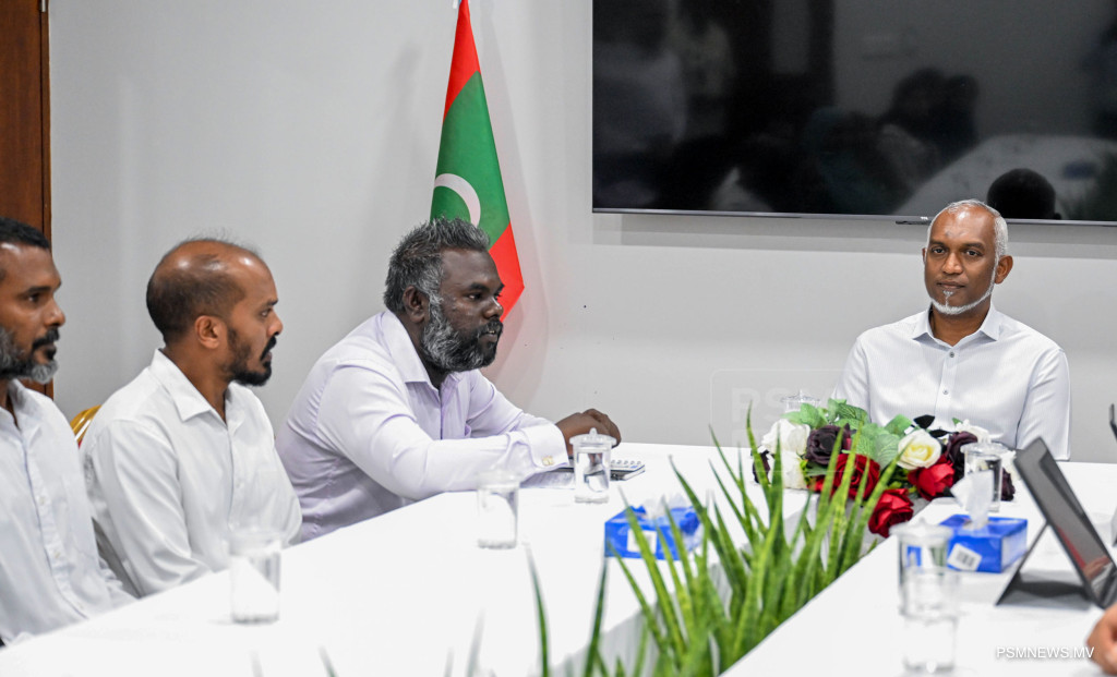 ރައީސުލްޖުމްހޫރިއްޔާ ޑރ. މުޙައްމަދު މުޢިއްޒު ށ. ފޭދޫ ކައުންސިލާއި، އ.ތ.މ ކޮމިޓީ އަދި ރަށުގެ މުއައްސަސާތަކުގެ އިސްވެރިންނާއި ބައްދަލުކުރެއްވުން / ފޮޓޯ - ރައީސް އޮފީސް