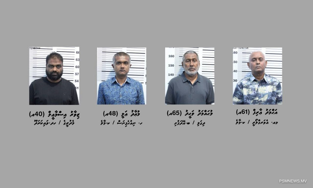 މިމީހުންގެ ތެރެއިން އަހުމަދު އާރިފް އާއި، ޒިވާރު އިސްމާއިލް 15 ދުވަހަށް ބަންދު ކުރުމަށް ކޯޓުން ވަނީ އަމުރުކޮށްފައެވެ. މިމައްސަލާގައި ހިމެނޭ މުހައްމަދު ވަހީދު 10 ދުވަހަށް އަދި މުއާޒު އަލީ 5 ދުވަހަށް ބަންދު ކުރުމަށް ވަނީ އަމުރުކޮށްފައެވެ.