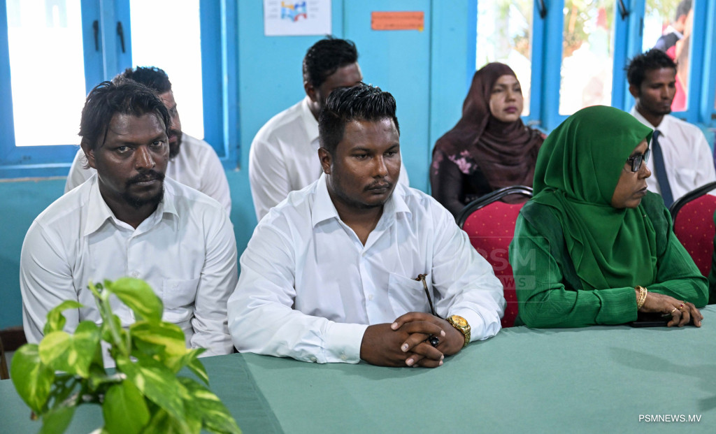 ރައީސުލްޖުމްހޫރިއްޔާ ޑރ. މުޙައްމަދު މުޢިއްޒު ލ. މާބައިދޫ ކައުންސިލާއި، އ.ތ.މ ކޮމިޓީ އަދި ރަށުގެ މުއައްސަސާތަކުގެ އިސްވެރިންނާއި ބައްދަލުކުރެއްވުމުގެ ތެރެއިން / ފޮޓޯ - ރައީސް އޮފީސް