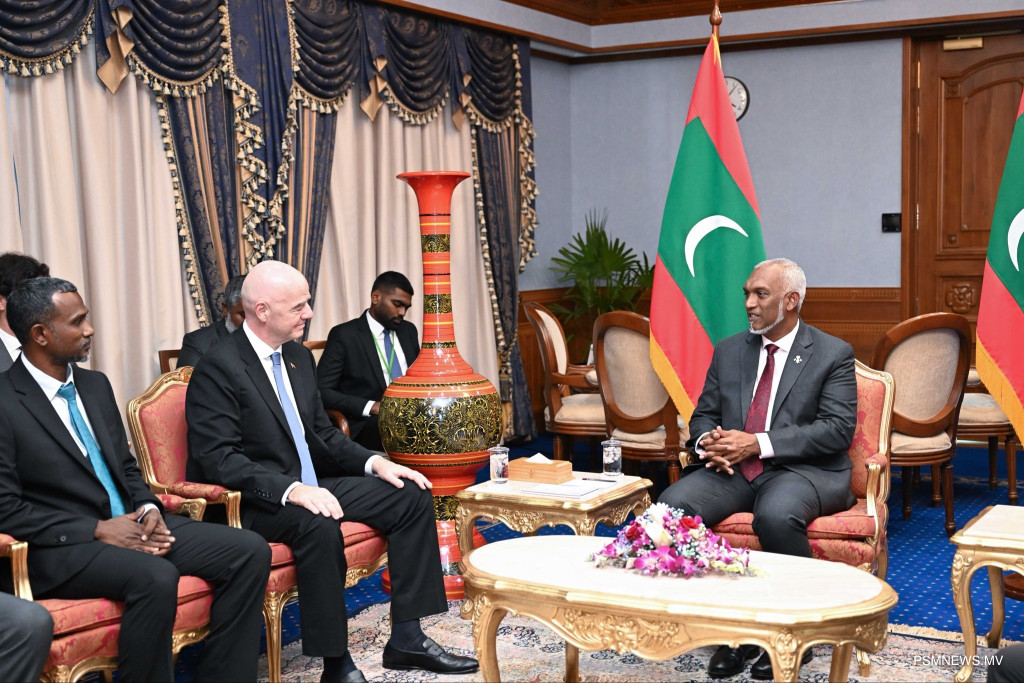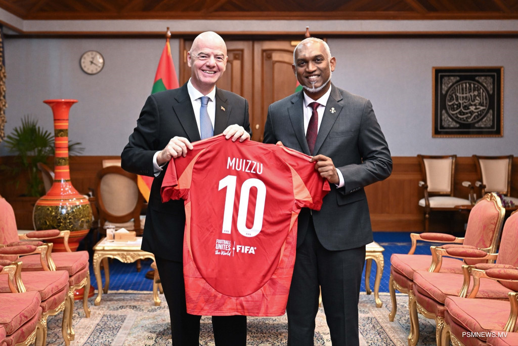 މިމަޝްވަރަތައް ކުރެއްވި ދުނިޔޭގެ ފުޓްބޯޅައިގެ މައި ޖަމްޢިއްޔާ، ފީފާގެ ރައީސް ޖިއާނީ އިންފަންޓީނޯ، ރައީސުލްޖުމްހޫރިއްޔާ އަރިހަށް ކުރެއްވި ޒިޔާރަތުގައެވެ.