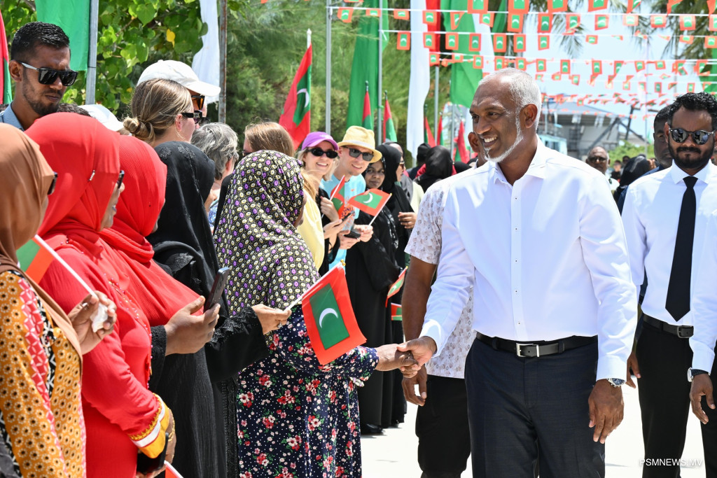 "މިރަށަކީ 27 ހެކްޓަރުގެ ރަށެއް. ރަށަށް އިތުރު 23 ހެކްޓަރު މި މަޝްރޫޢުގައި އެބަ އިތުރުކުރެވޭ. އަޅުގަނޑު ދޭ ޔަގީންކަމަކީ މި މަޝްރޫޢު 1 އަހަރުދުވަހުގެ ތެރޭގައި ނިންމާނެކަމުގެ ޔަގީންކަން. މަސައްކަތް ފަށާފަވާއިރު މަޝްރޫޢު ހުއްޓުމެއް ނެތި ކުރިއަށް ގެންގޮސް ބިން ހިއްކާ، ހިއްކާ ސަރަޙައްދު ޙިމާޔަތްކޮށް 1 އަހަރުން ނިންމާނަން." ރައީސް ވިދާޅުވިއެވެ.