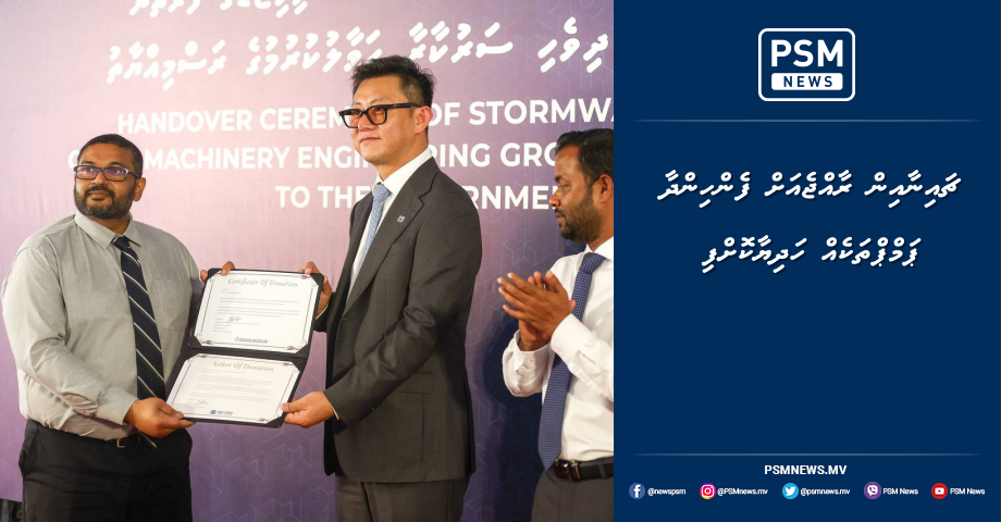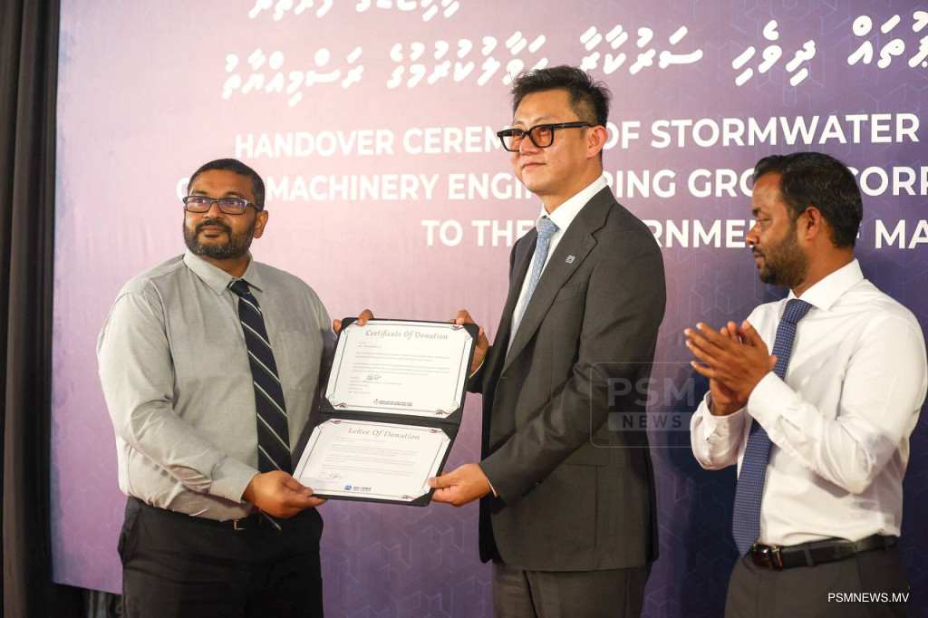 ޗައިނާ މެޝިނަރީ އިންޖިނިއަރިންގ ގްރޫޕް ކޯރޕަރޭޝަން ލިމިޓެޑްގެ ފަރާތުން ރާއްޖެއަށް ފެންހިންދާ ޕަމްޕްތަކެއް ހަދިޔާކޮށްފިއެވެ. މި ރަސްމިއްޔާތު ޝަރަފްވެރިކޮށްދެއްވީ ރައީސުލްޖުމްހޫރިއްޔާ ޑރ. މުޙައްމަދު މުޢިއްޒުއެވެ.