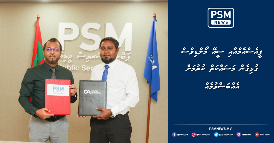 ޕަބްލިކް ސަރވިސް މީޑިއާ، ޕީއެސްއެމްއާއި އިންސްޓިޓިއުޓް އޮފް ޗާޓަރޑް އެކައުންޓަންޓްސް އޮފް ދަ މޯލްޑިވްސް، ސީއޭ މޯލްޑިވްސް ގުޅިގެން މަސައްކަތް ކުރުމަށް އެއްބަސްވުމެއްގައި ސޮއިކޮށްފިއެވެ.