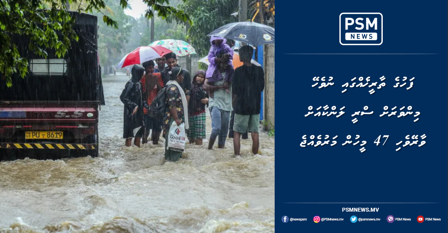 އާދަޔާ ޚިލާފަށް ވައި ގަދަވެ، ފެންބޮޑުވެ ބިންގަނޑު ކަނޑައިގެން ދިޔުމުގެ ހާދިޘާތަކާ ސްރީ ލަންކާއިން ކުރިމަތިލަމުންދާއިރު، އެ ޤައުމުގެ ޑިޒާސްޓަރ މެނޭޖްމަންޓު ސެންޓަރު (ޑީއެމްސީ)ން ބުނީ ވިއްސާރައާއި ފެންބޮޑުވުމުގެ ސަބަބުން މިހާތަނަށް 47 މީހުން މަރުވެފައިވާ ކަމަށެވެ. އަދި އިތުރު 21 މީހުން ވީނުވީއެއް ނޭނގި ގެއްލިފައިވާ ކަމަށެވެ. 1،729 ޢާއިލާއަކަށް ނިސްބަތްވާ 5،893 މީހުންނަށް ވިއްސާރައިގައި އަސަރުކޮށްފައިވާ ކަމަށް އެ އިދާރާއިން ބުނެއެވެ.
