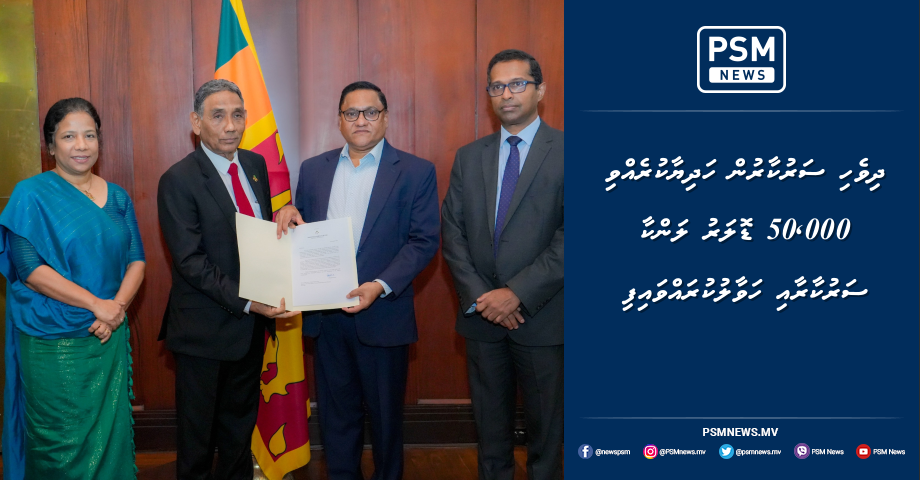 ދިވެހި ސަރުކާރުން ހަދިޔާކުރެއްވި 50،000 ޑޮލަރު ލަންކާ ސަރުކާރާއި ހަވާލުކުރައްވައިފި