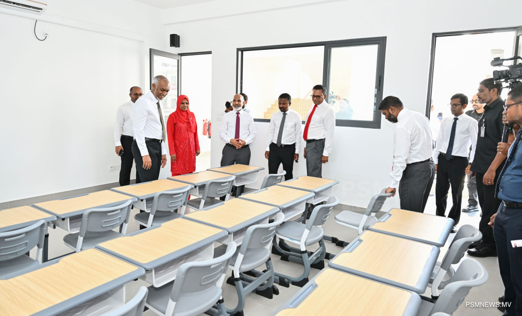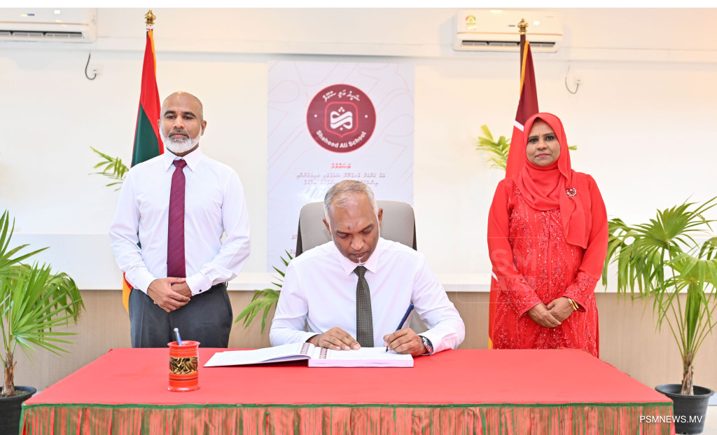 ފޮޓޯ: ރައީސުލްޖުމްހޫރިއްޔާ ޑރ.މުހައްމަދު މުޢިއްޒު، ޝަހީދު ޢަލީ ސްކޫލް ރަސްމީކޮށް ހުޅުއްވައިދެއްވުން