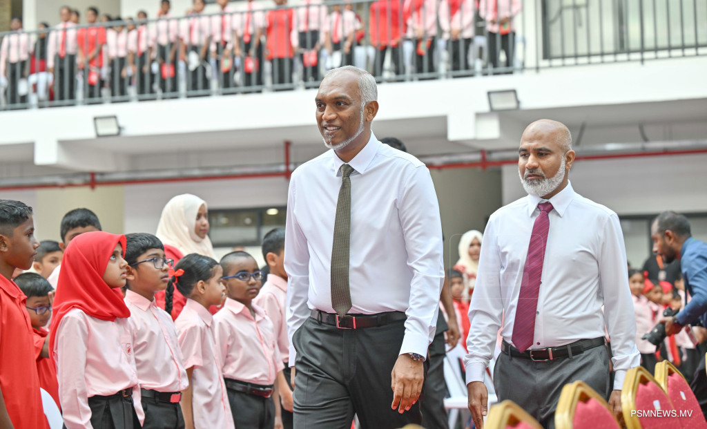 ރައީސުލްޖުމްހޫރިއްޔާ ޑރ.މުހައްމަދު މުޢިއްޒު، ޝަހީދު ޢަލީ ސްކޫލް ރަސްމީކޮށް ހުޅުއްވައިދެއްވުން/ ފޮޓޯ: ރައީސް އޮފީސް