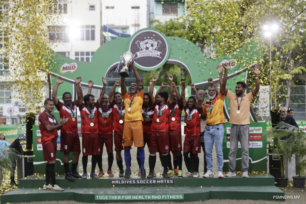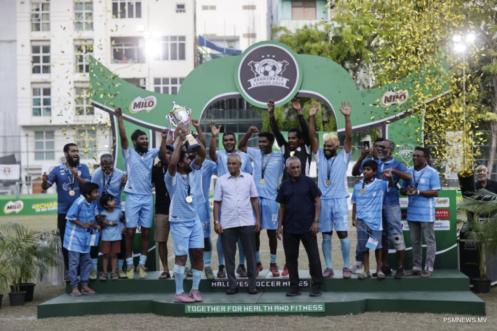 މޯލްޑިވްސް ސޮކަރ މޭޓްސްއިން އިންތިޒާމުކޮށްގެން ކުރިއަށްގެންދާ ރަމަޟާން 7ވީ7 ލީގު 2026 ގެ ވެޓެރެންސް ކެޓަގަރީގެ ޗެމްޕިއަންކަން ލެގޫންސް ސްޕޯޓްސް ކުލަބު ހޯދި އިރު މުބާރާތުގެ މާސްޓަރސް ކެޓަގަރިގެ ތަށި ޓީސީ ސްޕޯޓްސް ކުލަބުން ހޯދައިފިއެވެ.