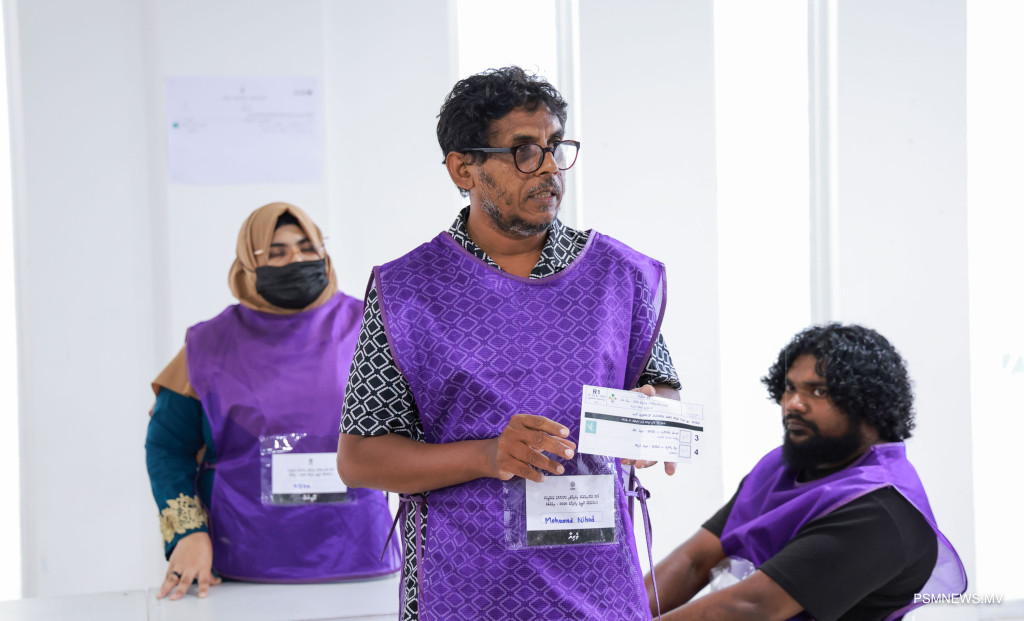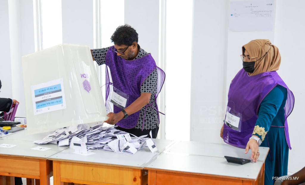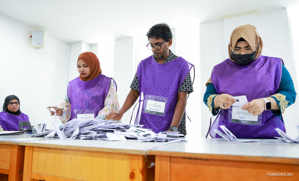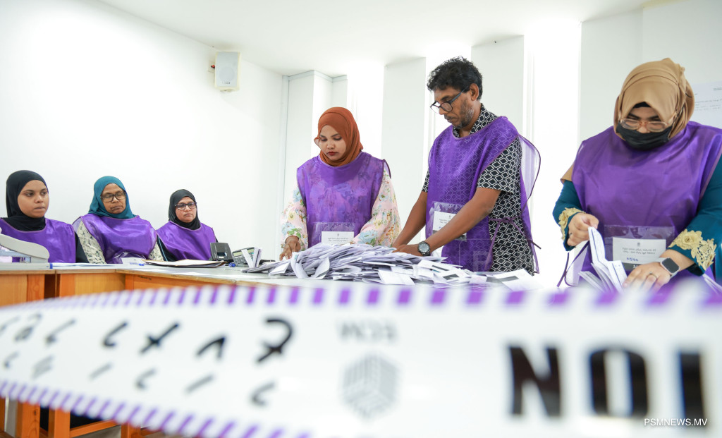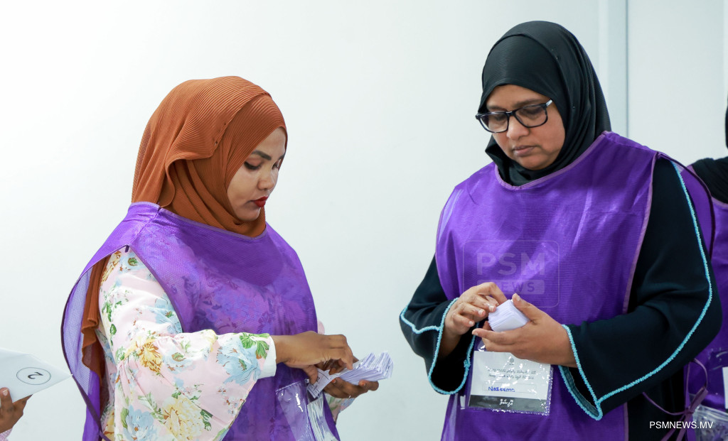 ލޯކަލް ކައުންސިލް އިންތިޚާބާއި އަންހެނުންގެ ތަރައްޤީއަށް މަސައްކަތްކުރާ ކޮމިޓީގެ އިންތިޚާބުގެ އިތުރުބުރުގެ ވޯޓު ގުނުމުގެ މަސއްކަތް ކުރިއަށް ދަނީ / ފޮޓޯ: މުޙައްމަދު ވަޙީދު، ޕީއެސްއެމް ނިއުސް