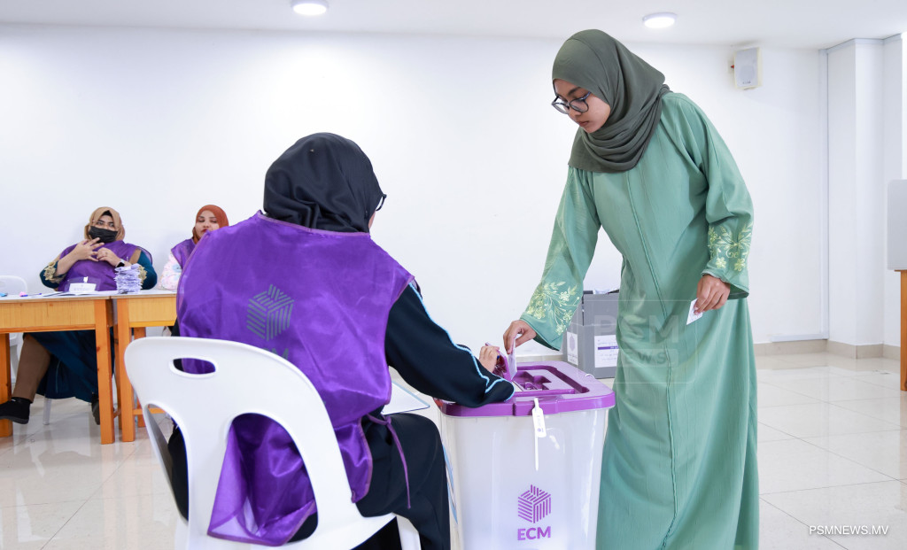 ލޯކަލް ކައުންސިލް އިންތިޚާބާއި އަންހެނުންގެ ތަރައްޤީއަށް މަސައްކަތްކުރާ ކޮމިޓީގެ އިންތިޚާބުގެ އިތުރުބުރުގެ ވޯޓުލުން / ފޮޓޯ: މުޙައްމަދު ވަޙީދު، ޕީއެސްއެމް ނިއުސް